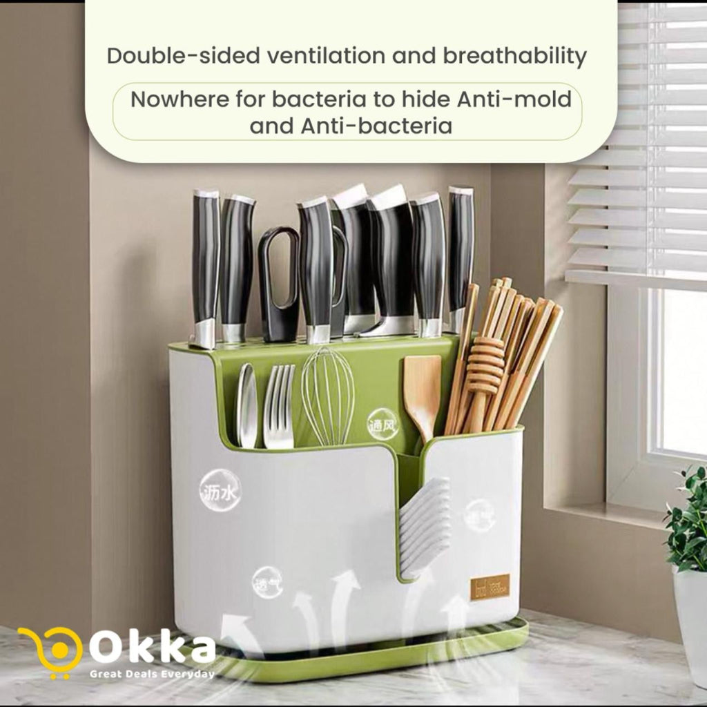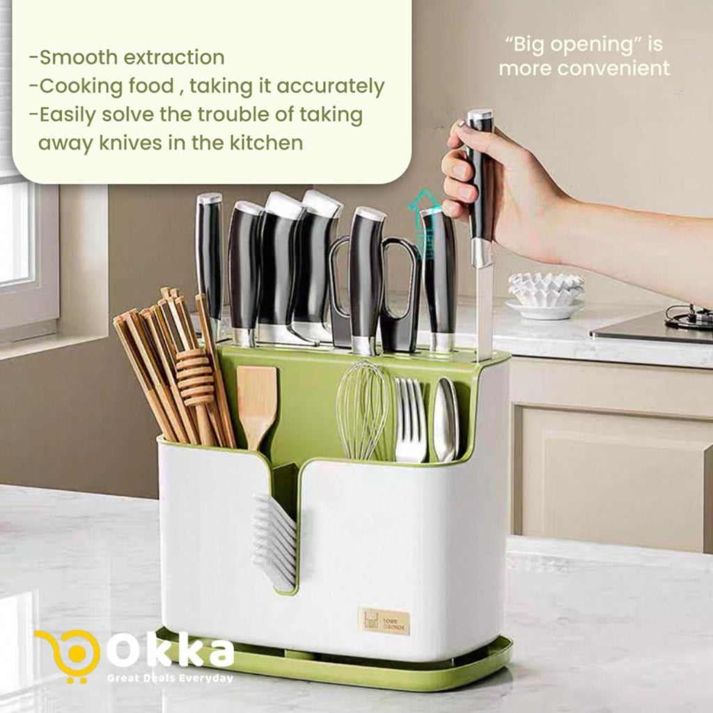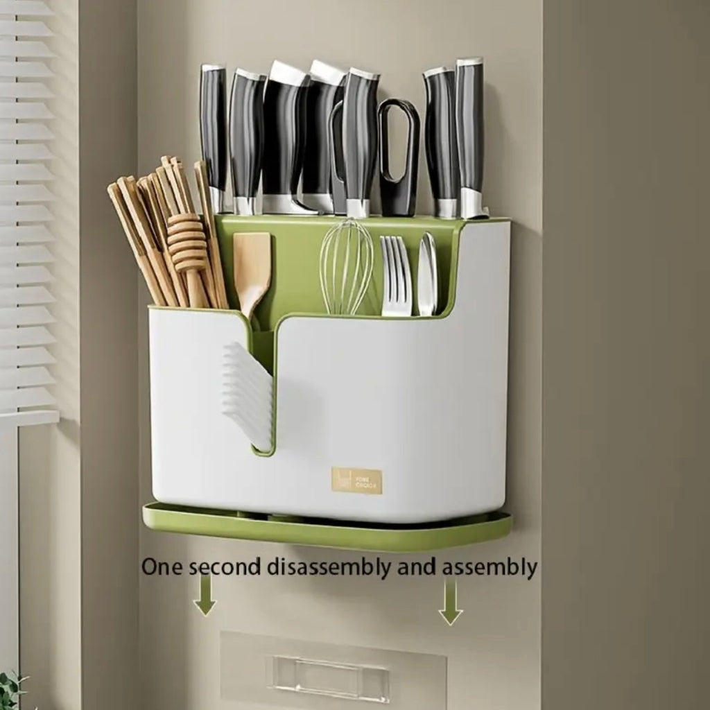يحافظ حامل السكين متعدد الوظائف هذا على تنظيم مطبخك من خلال تصميمه القابل للفصل وصينية الصرف. مثبت على الحائط لتوفير مساحة العداد ، ويضمن الحامل التهوية أن أدوات المائدة جافة ويمكن الوصول إليها. حل عملي لأي مطبخ منزلي يجمع بين الراحة مع التخزين الذكي ...