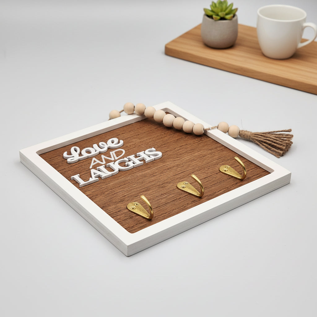 يتميز حامل المفاتيح الخشبي هذا بثلاثة خطافات قوية، مثالية لتنظيم المفاتيح والمجوهرات والإكسسوارات الصغيرة. يضيف تصميمه العتيق لمسة ساحرة إلى أي مدخل أو غرفة، ويجمع بين الوظيفة والنمط الكلاسيكي. من السهل تركيبه على الحائط، فهو يساعد في الحفاظ على أغراضك الأساسية مخزنة بشكل أنيق وفي متناول اليد.