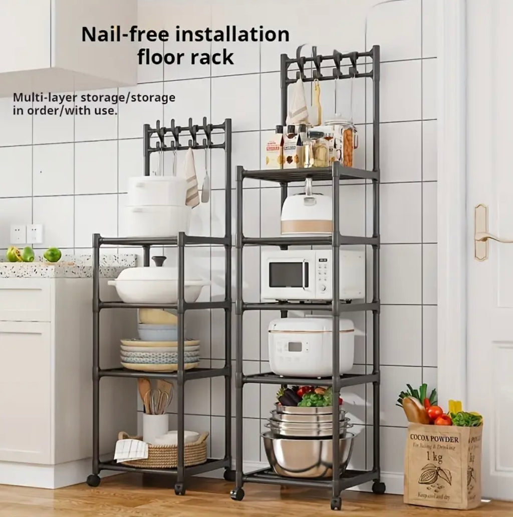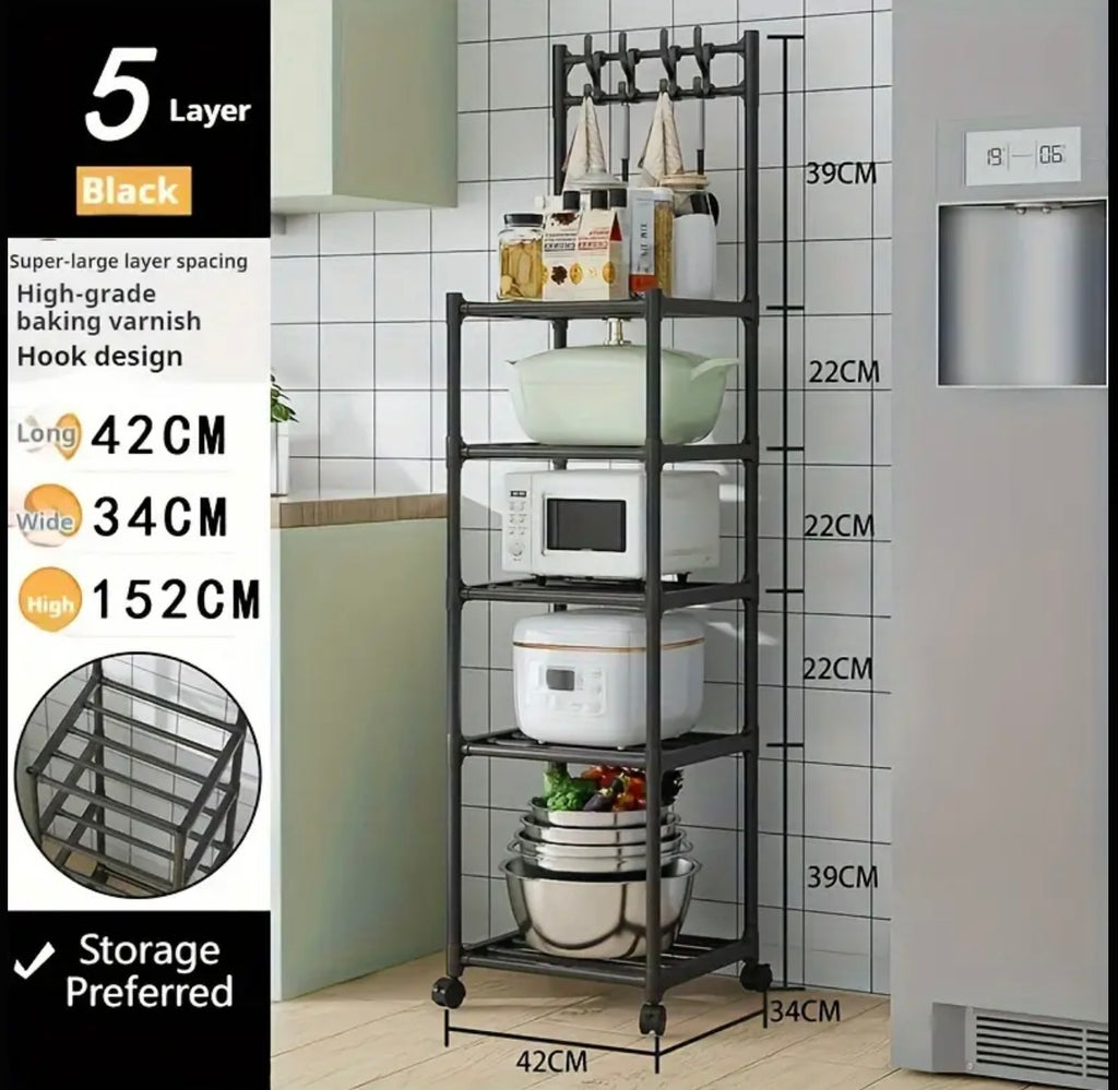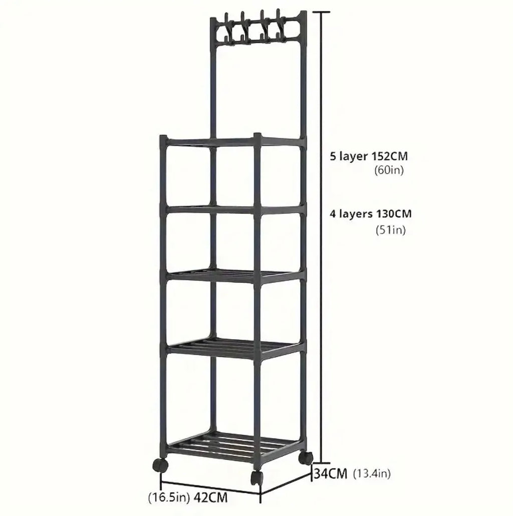 يتميز رف التخزين المعدني القابل للتعديل هذا بـ 4 أو 5 مستويات مع خطافات ، مما يجعله مثاليًا لتنظيم مطبخك أو غرفة نوم أو غرفة مغسلة. يوفر بناء المعادن القوي وموقفه المستقل دعمًا موثوقًا واستقرارًا. يساعد التصميم متعدد الاستخدامات في الحفاظ على مساحتك مرتبة والعناصر التي يمكن الوصول إليها بسهولة.