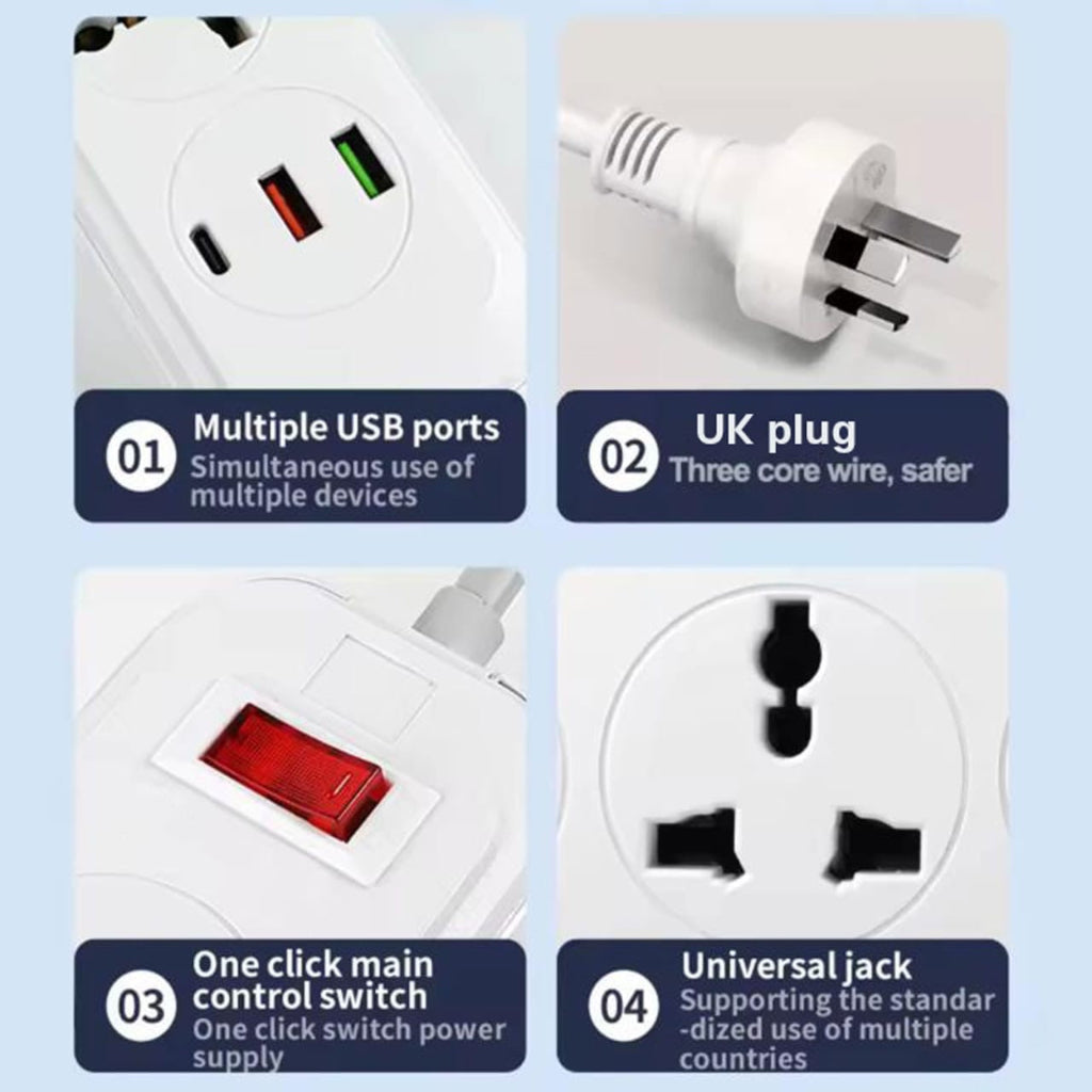 يوفر شريط الطاقة متعدد الاستخدامات هذا 4 مآخذ قياسية بالإضافة إلى 3 منافذ USB (2 USB-A و 1 USB-C) لشحن أجهزة متعددة في وقت واحد. من خلال كابل سخي بسعة 200 سم وقابس المملكة المتحدة متوافق مع منافذ 220v-240v ، فهو مثالي لأي إعداد من المطابخ المنزلية إلى المساحات المكتبية. مثالي للسفر ، بما في ذلك الإجازات الرحلية ، يحافظ هذا الحل العملي على جميع إلكترونياتك مدعومة أينما ذهبت ...