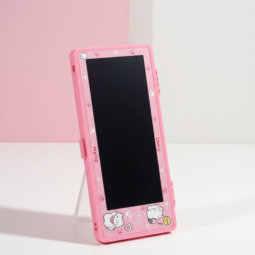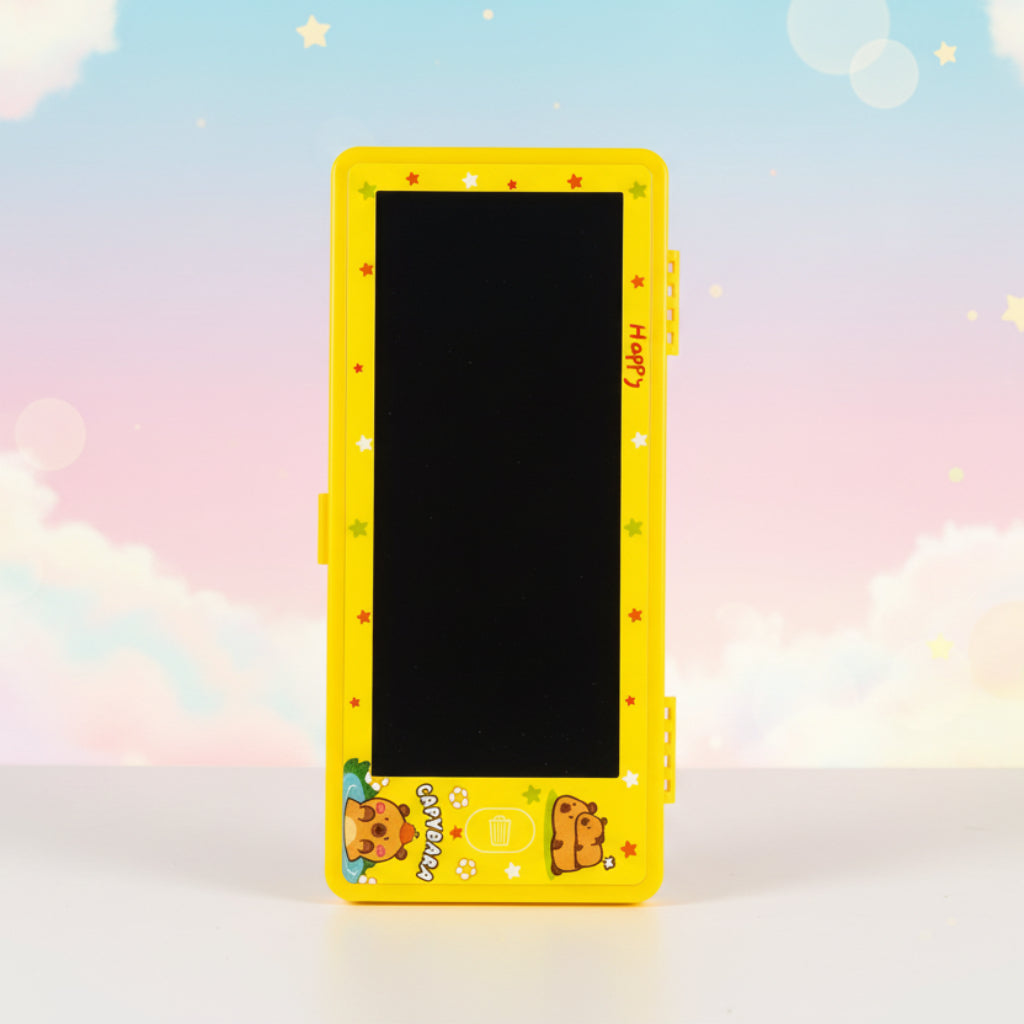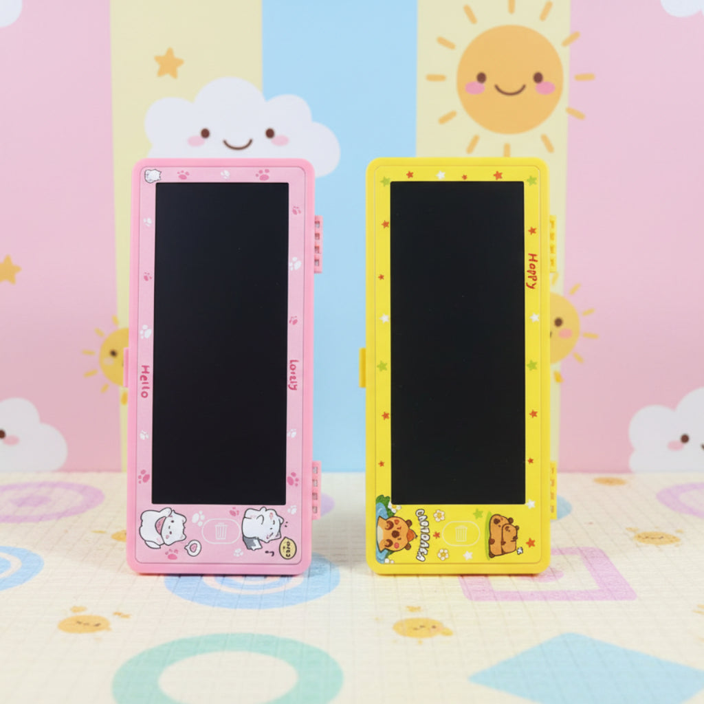 صندوق تخزين القلم المخصص - منظم قرطاسية كرتوني لطيف مع لوحة رسم LED مقاس 7 بوصة