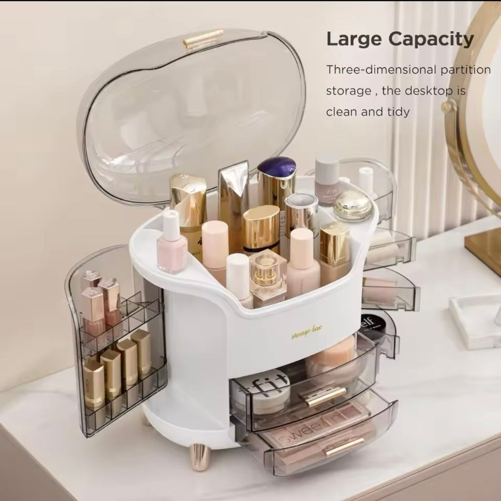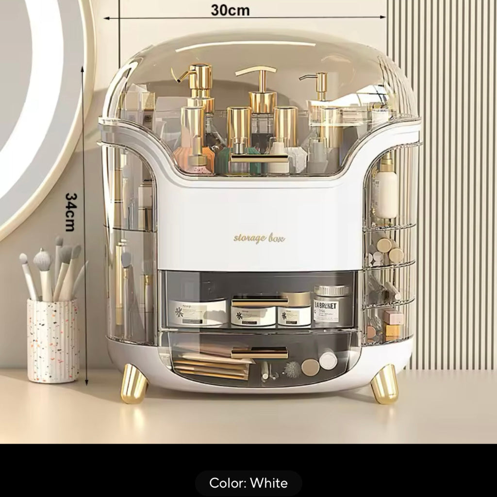تنظيم بسهولة مستحضرات التجميل والمجوهرات مع صندوق التخزين الفسيح والشفاف. تضمن خزانة DustProof أن تكون منتجاتك نظيفة ومرئية على طاولة الملابس الخاصة بك. حافظ على روتين المكياج الخاص بك بسيطًا وفعالًا من خلال مربع درج سطح المكتب الخاص بنا ...