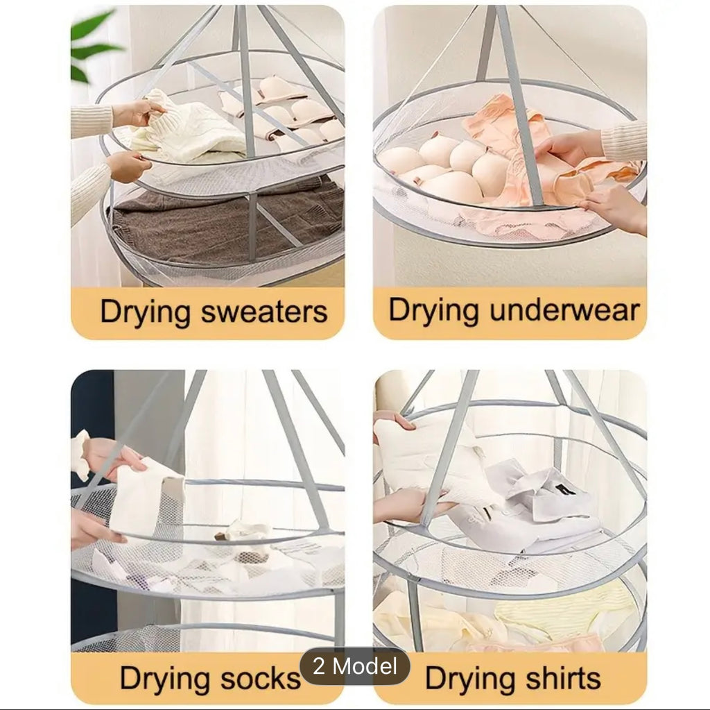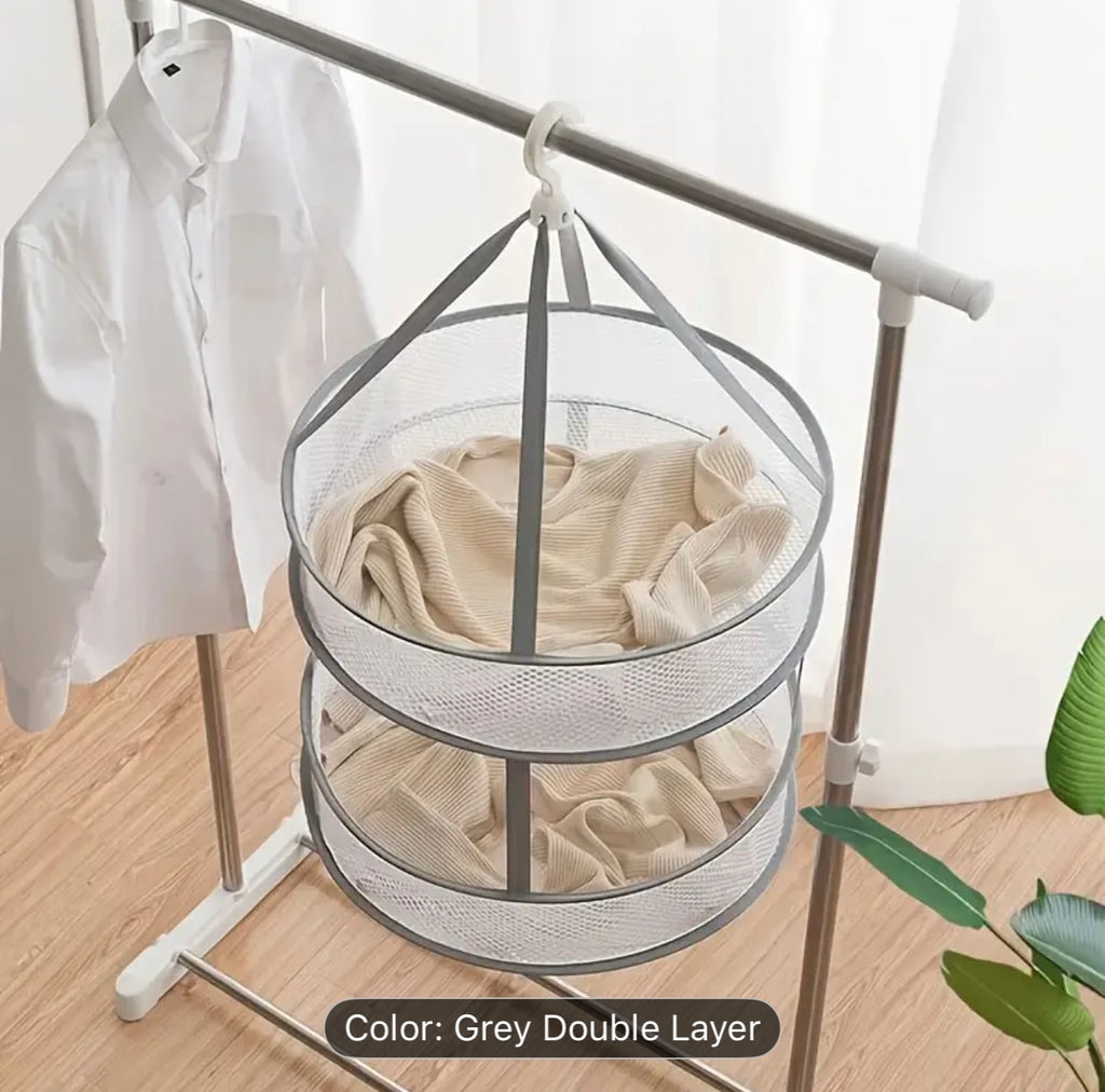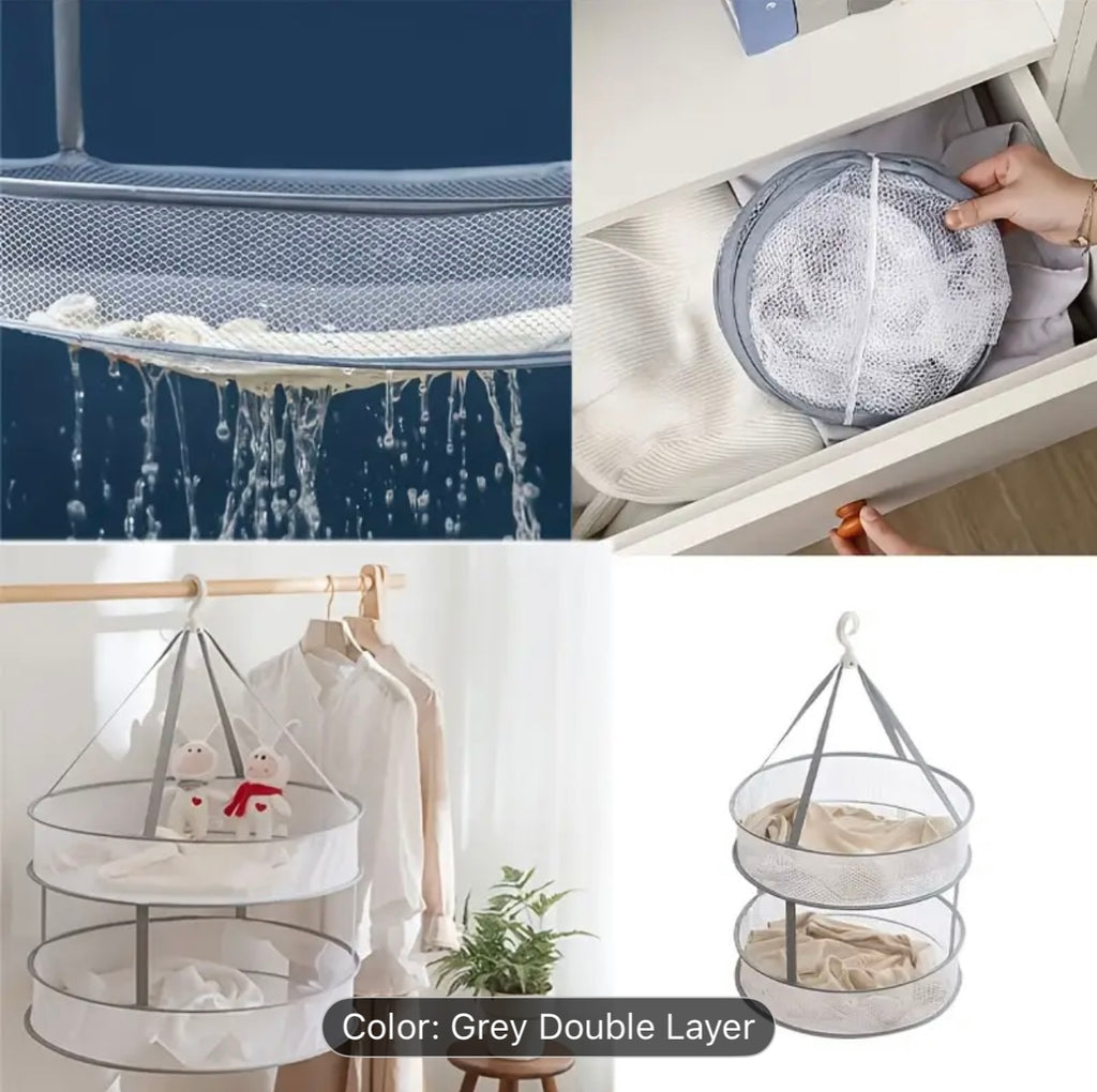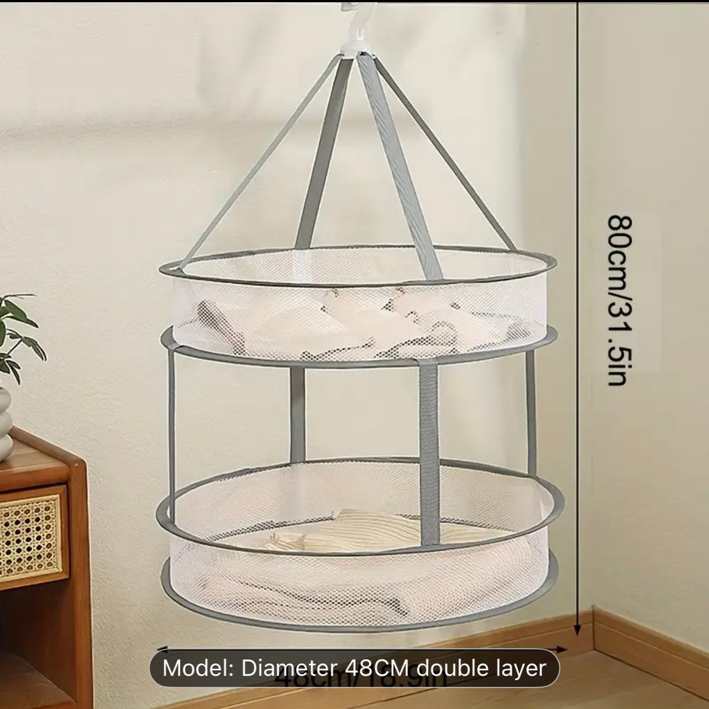 سلة تجفيف الملابس بطبقة مزدوجة دوارة 360 درجة - قابلة للطي ومقاومة للرياح