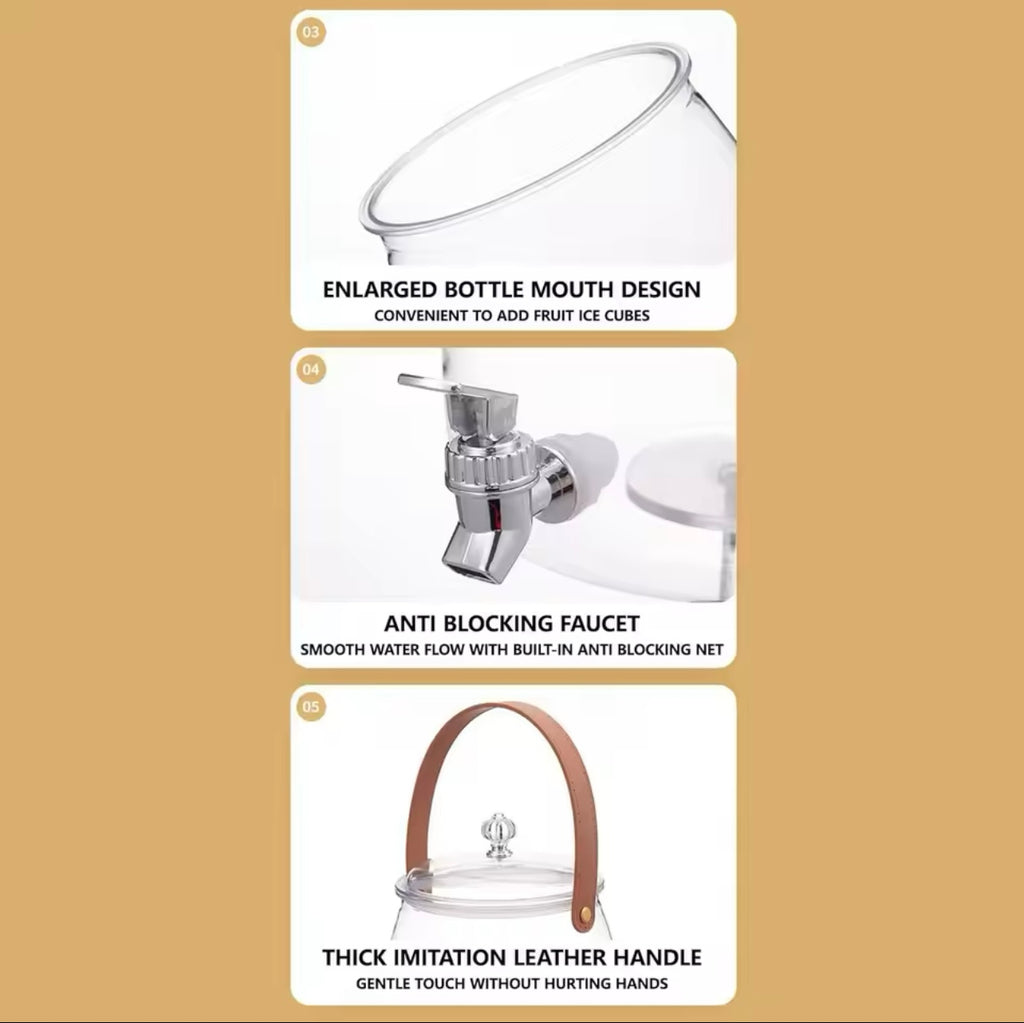 This beverage dispenser is perfect for parties, featuring a leakproof design with a convenient spigot and handle. Ideal for serving iced juice, lemonade, or other cold drinks, it makes pouring easy and mess-free. Its sturdy construction ensures reliable use, helping you keep your drinks fresh and accessible for guests.
