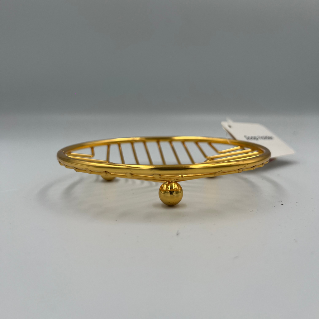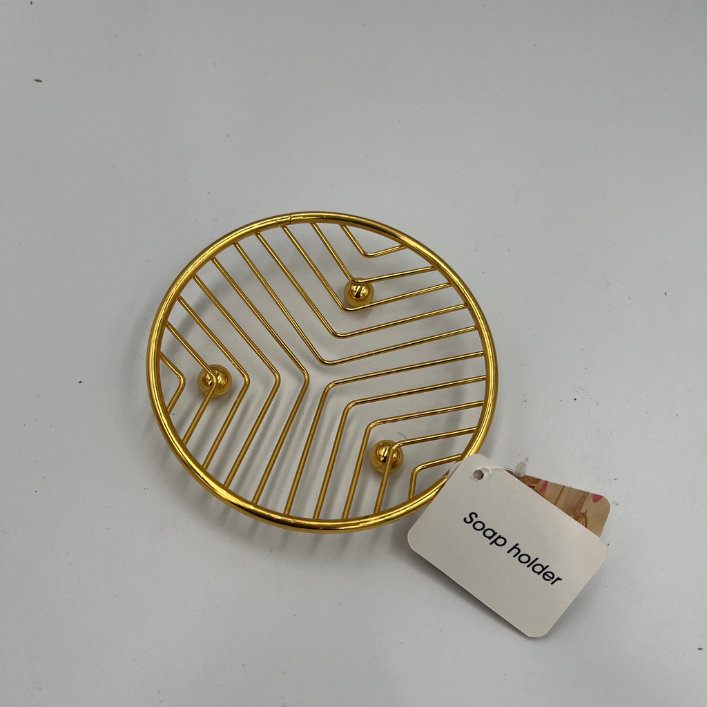 This elegant golden metal soap dish combines style and practicality with its durable iron construction and built-in drainage. Perfect for bathroom or kitchen use, it keeps your soap dry and organized while adding a decorative touch to your space. Its sleek design fits seamlessly with various decor styles, making it a functional and attractive accessory for everyday use.