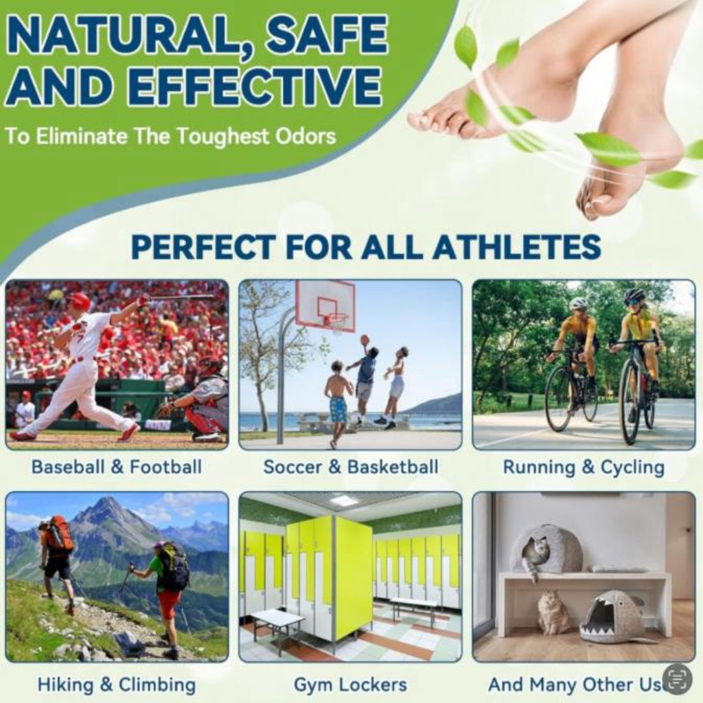 Effective shoe odor deodorant spray formulated with natural essential oils to eliminate bad smells and keep shoes fresh all day. Ideal for sports shoes, work shoes, socks, and foot hygiene. Helps prevent odor-causing bacteria while providing a refreshing fragrance.