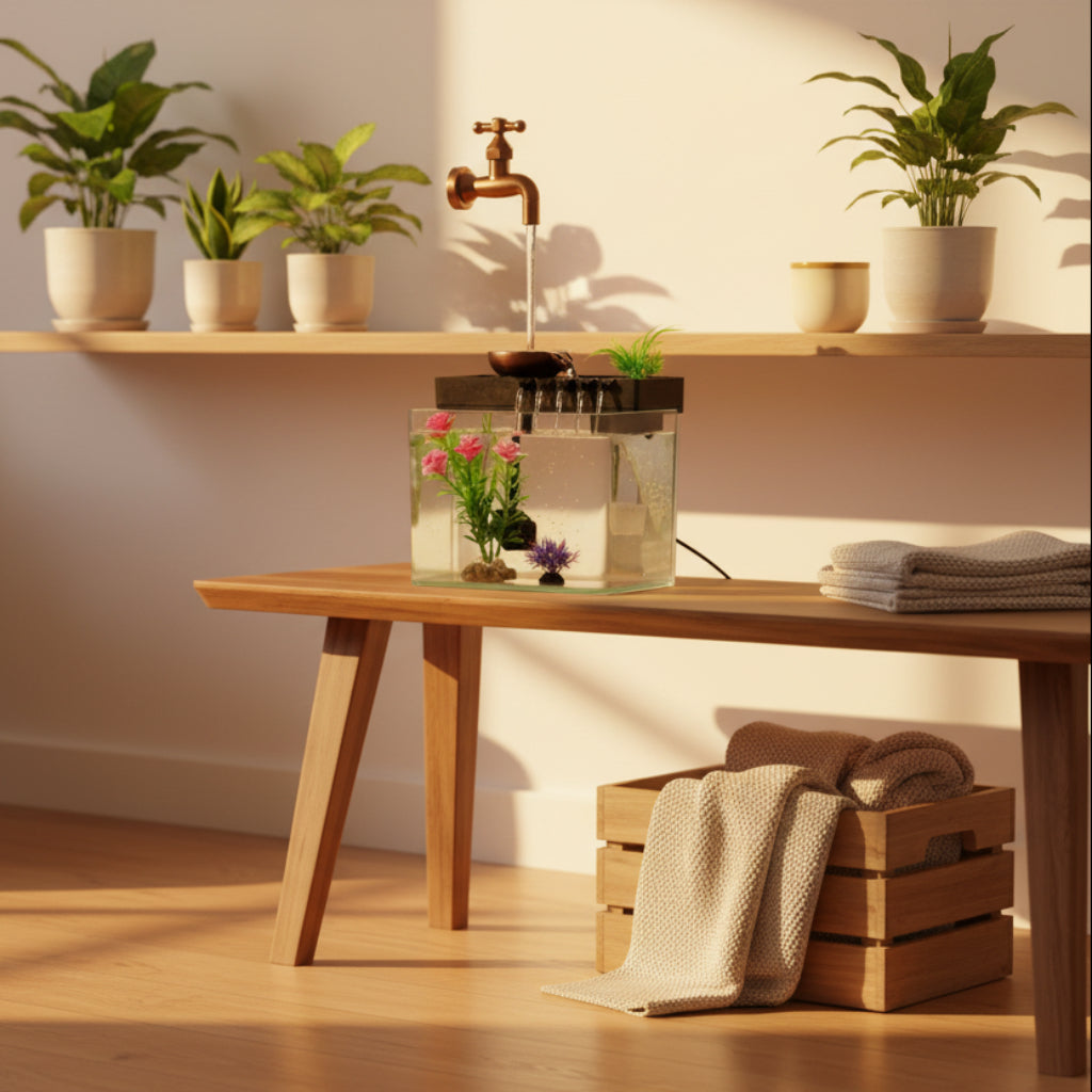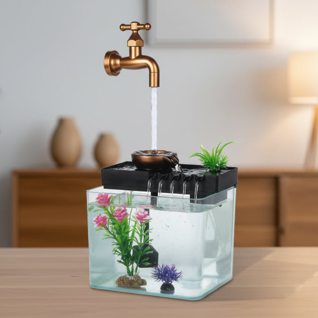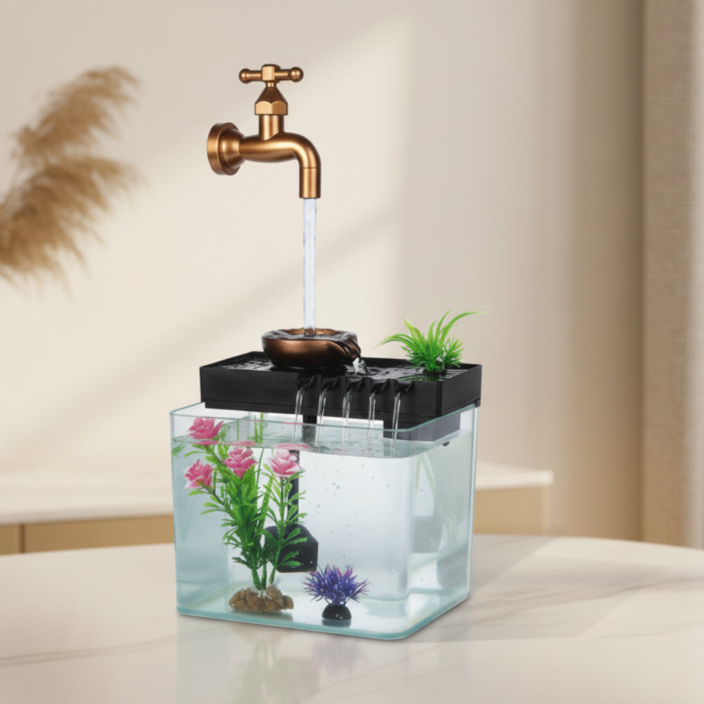 Add a peaceful and elegant touch to your space with this landscape fish tank desktop ornament featuring a realistic flowing water effect. The gentle water movement creates a relaxing atmosphere, perfect for home, office, shop counters, or reception desks.Powered by USB, it is convenient and energy-efficient. Simply connect to a power bank,USB adapter to enjoy the soothing water display anytime.Size19x22x15 cm