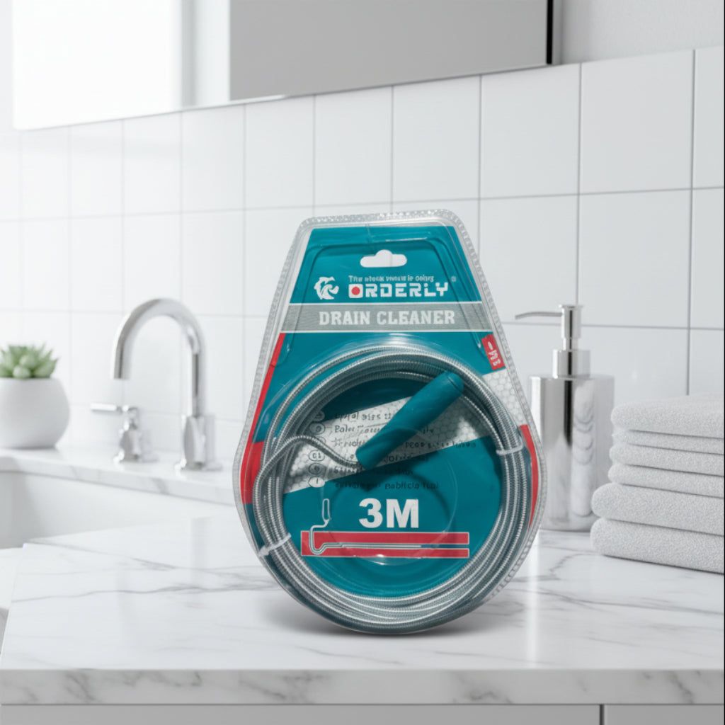 Clear blocked drains quickly and easily with the 3 Meter Corkscrew Drain Auger Probe. Designed with a 6mm flexible spring wire, this hand tool effectively removes hair, grease, soap residue, and grime from kitchen sinks, bathroom drains, shower pipes, and plug holes.The corkscrew tip helps grip and pull out debris, while the flexible metal coil easily navigates through curved pipes for deep cleaning. A practical and reusable solution for home maintenance without the need for harsh chemicals.