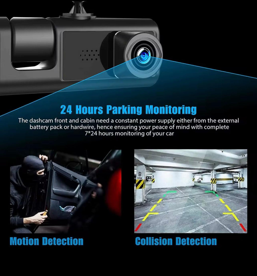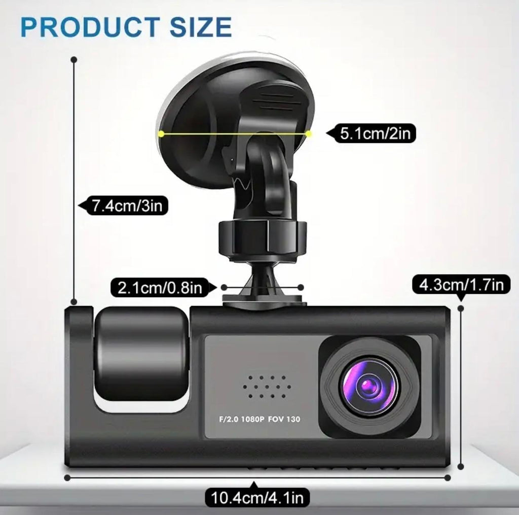 Capture every moment on the road with this advanced 3-in-1 dash cam system. Featuring dual HD 1080P lenses, it records both front and interior views simultaneously for complete coverage. The integrated video recorder and black box function provide reliable evidence in case of accidents or disputes. Compact and easy to install, this dash cam delivers crystal-clear footage day and night, giving you peace of mind during every drive.