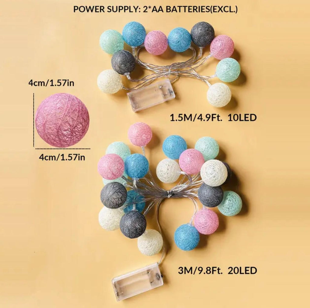 These 3-meter pastel LED ball string lights add a soft, colorful glow to any space. Featuring matte spherical bulbs in pink, blue, turquoise, yellow, light green, lavender, and gold, they create a charming ambiance perfect for weddings, rooms, Christmas trees, or parties. Lightweight and easy to hang indoors, they bring a gentle, decorative touch without overwhelming your space.