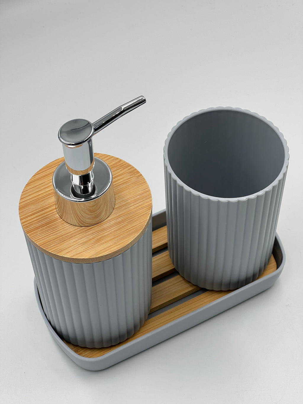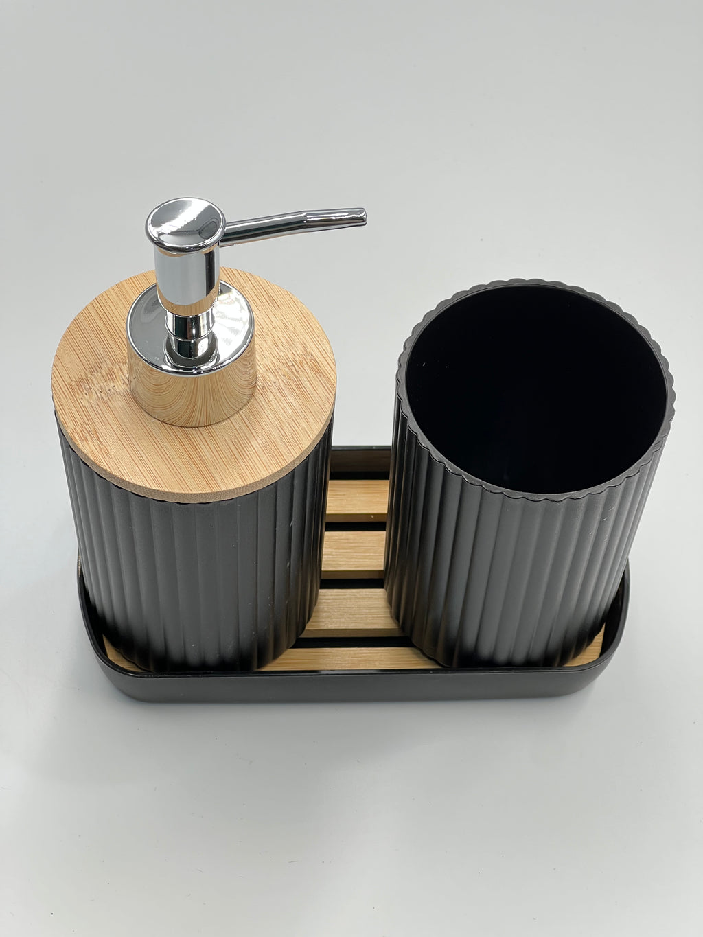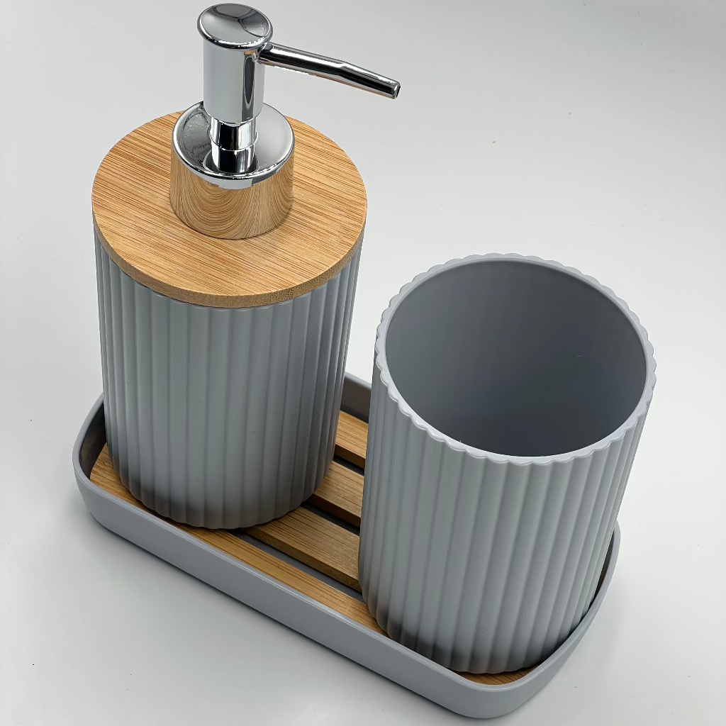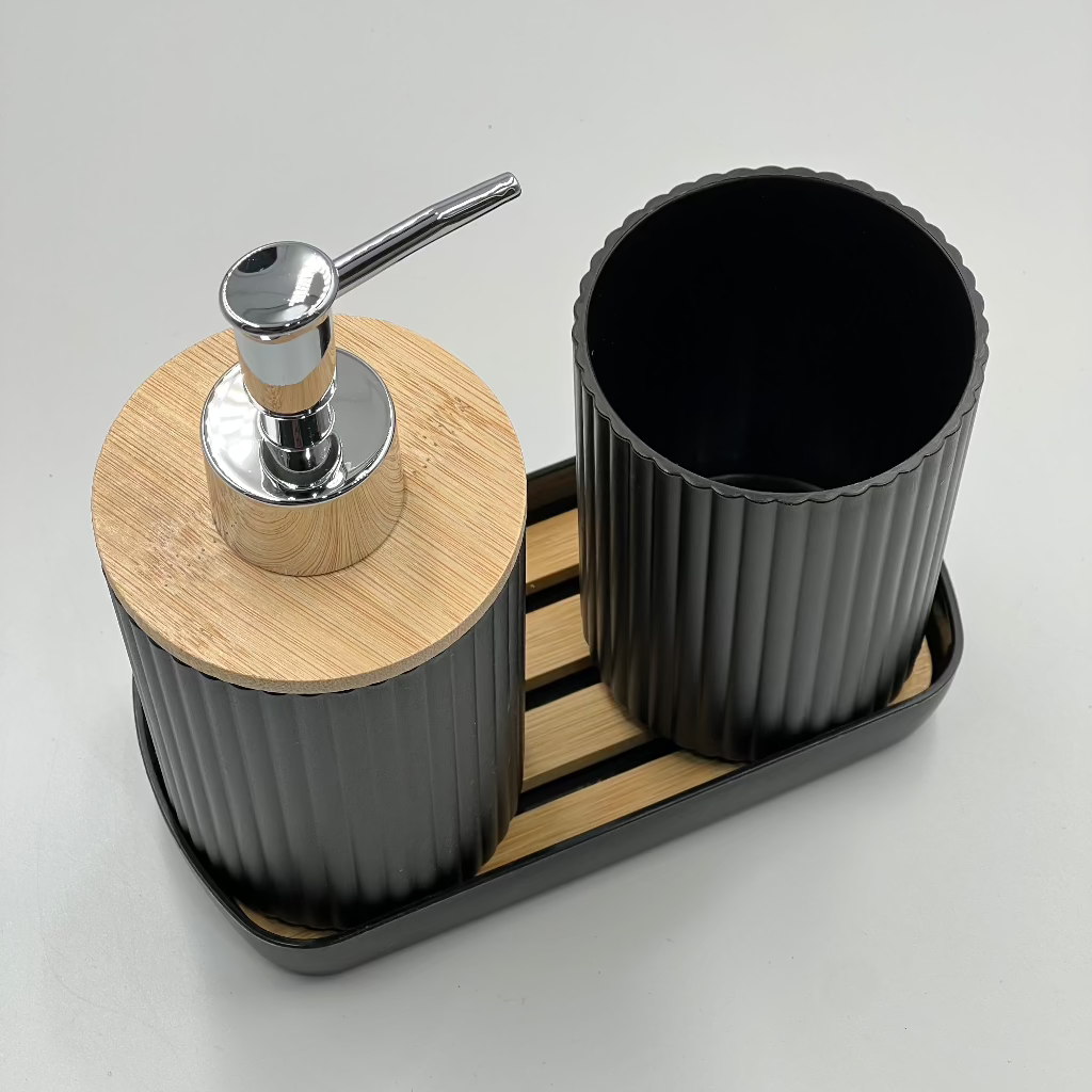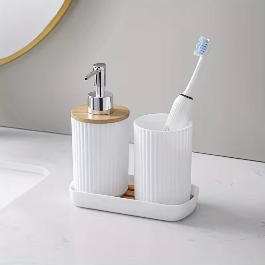 This 3-piece bathroom toiletry set includes a lotion bottle holder, a toothbrush cup, and a tray. Designed to keep your bathroom organized, it helps you store essentials neatly in one place. Perfect for maintaining a tidy and functional space.