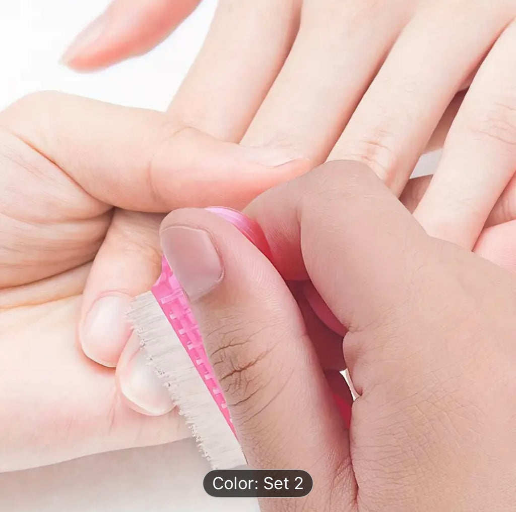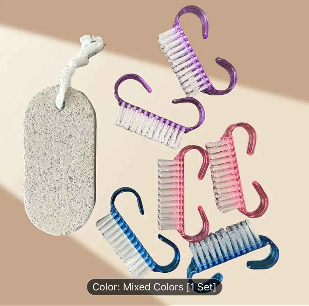 Keep your feet clean and smooth with this natural volcanic stone foot scrubber and 2-pack of ergonomic nail cleaning brushes. Designed for easy use and compact portability, this set is perfect for bathroom parties and activities. The unscented tools with pink handles and multi-colored bristles. Suitable for both men and women.