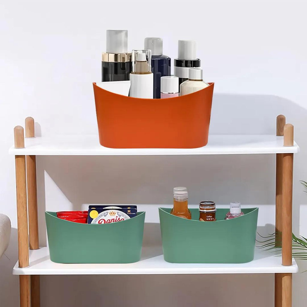 Versatile waterproof plastic storage containers designed for any room in your home. These sturdy organizers keep snacks, detergents, cosmetics, and kitchen items neatly arranged. Perfect for countertops, tables, and bathrooms, these practical baskets help eliminate clutter while providing easy access to everyday essentials...