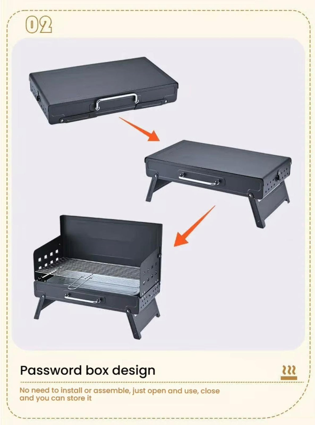 This portable iron charcoal barbecue grill stand is the perfect choice for outdoor cooking at home or on the go. Designed with a durable iron body, it delivers strong heat resistance and long-lasting performance for everyday grilling. Its folding, lightweight design makes it easy to carry, store, and set up anywhere ideal for camping, picnics, tailgating, backyard parties, and household use.