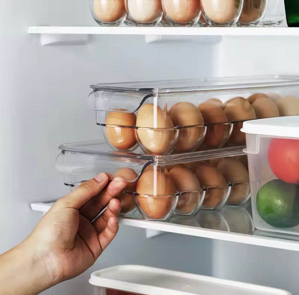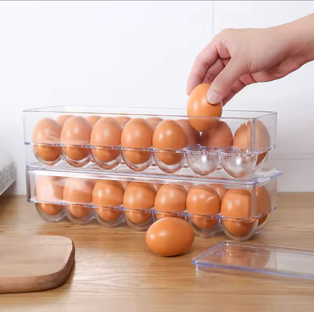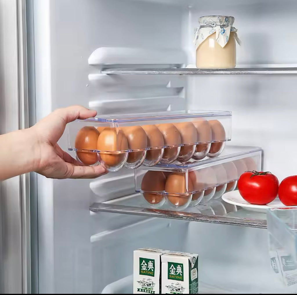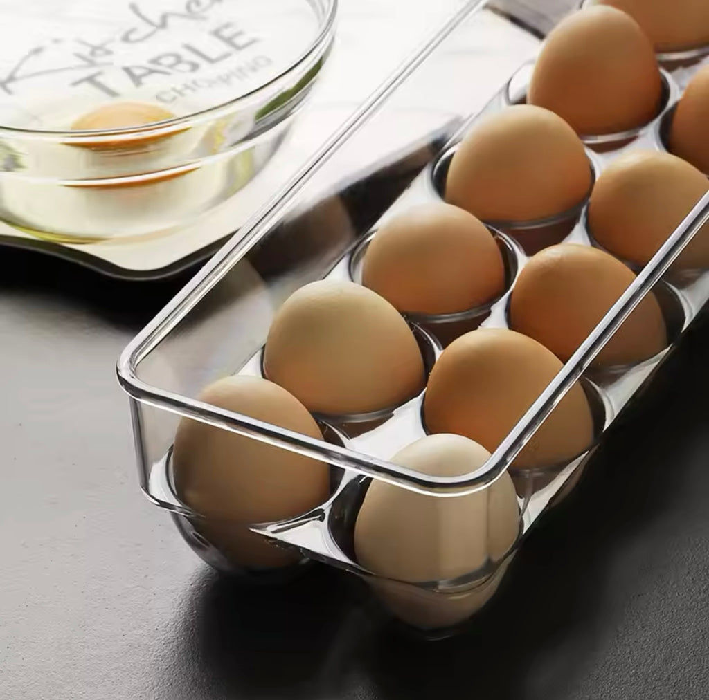 This refrigerator egg storage box organizer keeps your eggs fresh and organized. The transparent tray allows for easy visibility and the dispenser design makes it convenient to access individual eggs. Available in 12,14 grid options to suit your storage needs...