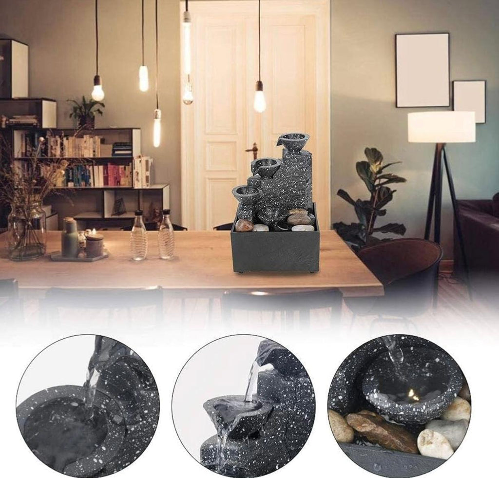 Transform your space with this charming tabletop waterfall fountain. The cascading water creates a soothing ambiance while built-in LED lights add a gentle glow to any room. Powered by USB for convenient placement on desks, shelves, or nightstands. Decorative stones enhance the natural aesthetic. Perfect for relaxation, meditation, or adding a calming focal point to your home or office. Whisper-quiet operation won't disturb your peace.
