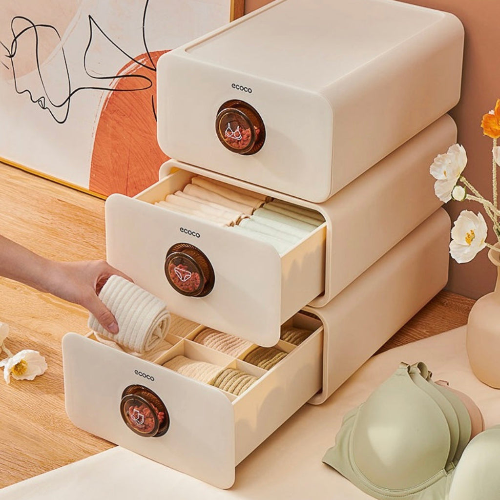 Keep your underwear organized and protected with the Underwear Storage Box. With its portable design and mildew-proof material, it's perfect for home or travel. Its deodorizing and anti-mite properties make it ideal for storing personal clothing, while the drawer separation feature allows for easy sorting and access. Say goodbye to cluttered and musty drawers with this creative storage solution.