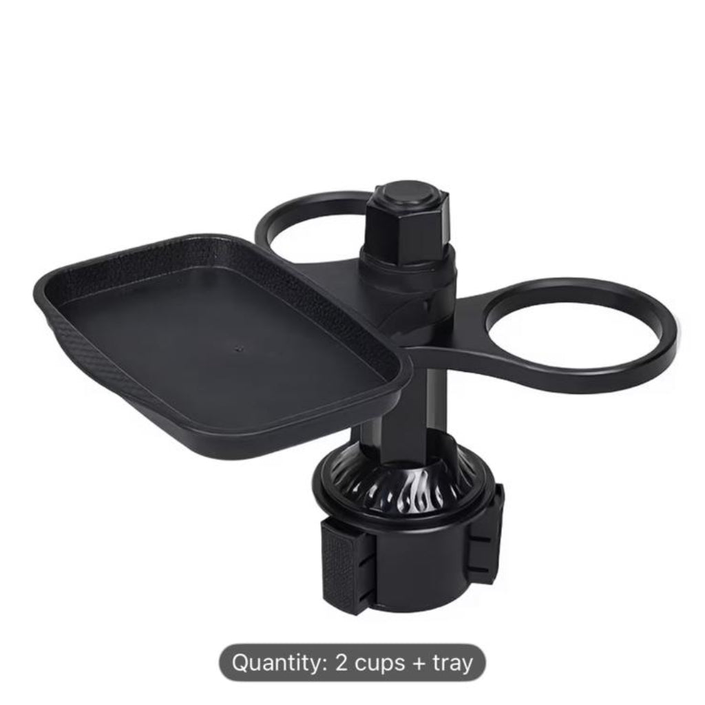 Upgrade your car interior with this universal-fit 3-in-1 car cup holder tray set. Made from durable ABS resin, it functions as a beverage extender, organizer, and convenient dining tray all in one compact design.Featuring an adjustable dual cup base, this organizer fits securely into most standard car cup holders. The detachable dining plate